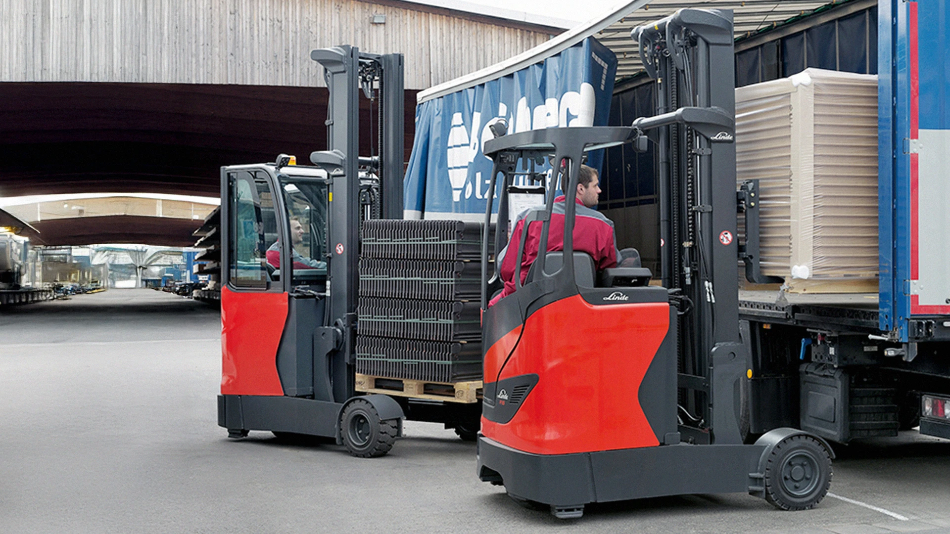 Our intelligent driver assistance systems actively help the driver to avoid accidents and maneuver safely. Whether counterbalanced forklift trucks, warehouse trucks, reach trucks, or very narrow aisle trucks, Linde Material Handling offers a wide range of solutions that make drivers’ day-to-day work easier and increase safety in the warehouse.