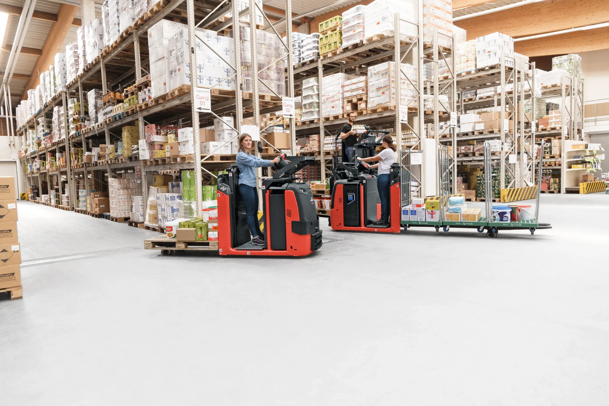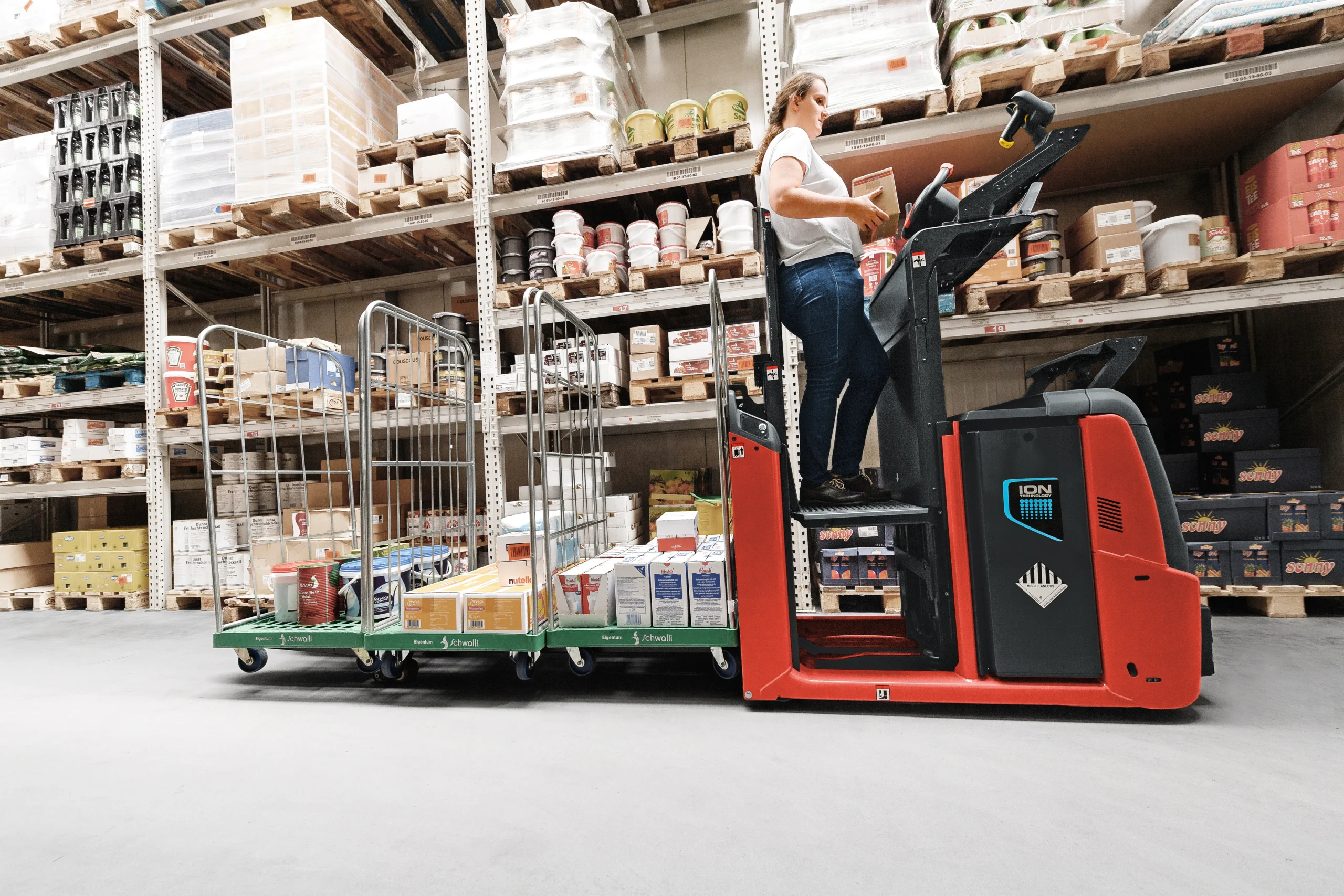 Za ergonomski rad, pješačke udaljenosti između platforme operatera i robe za komisioniranje trebaju biti što kraće i što ravnije. Niskopodizni komisioneri imaju posebno nisku visinu ulaza od samo 13 centimetara, što olakšava često ulaženje i izlaženje. Široki, U-oblikovani dizajn također olakšava pristup s obje strane. Linde upravljački kotač i naslon podesivi su po visini za vožnju koja je prilagođena leđima. Amortizirana platforma smanjuje vibracije uzrokovane neravnim površinama, a neklizajuća gumena podloga dodatno poboljšava položaj stajanja vozača.