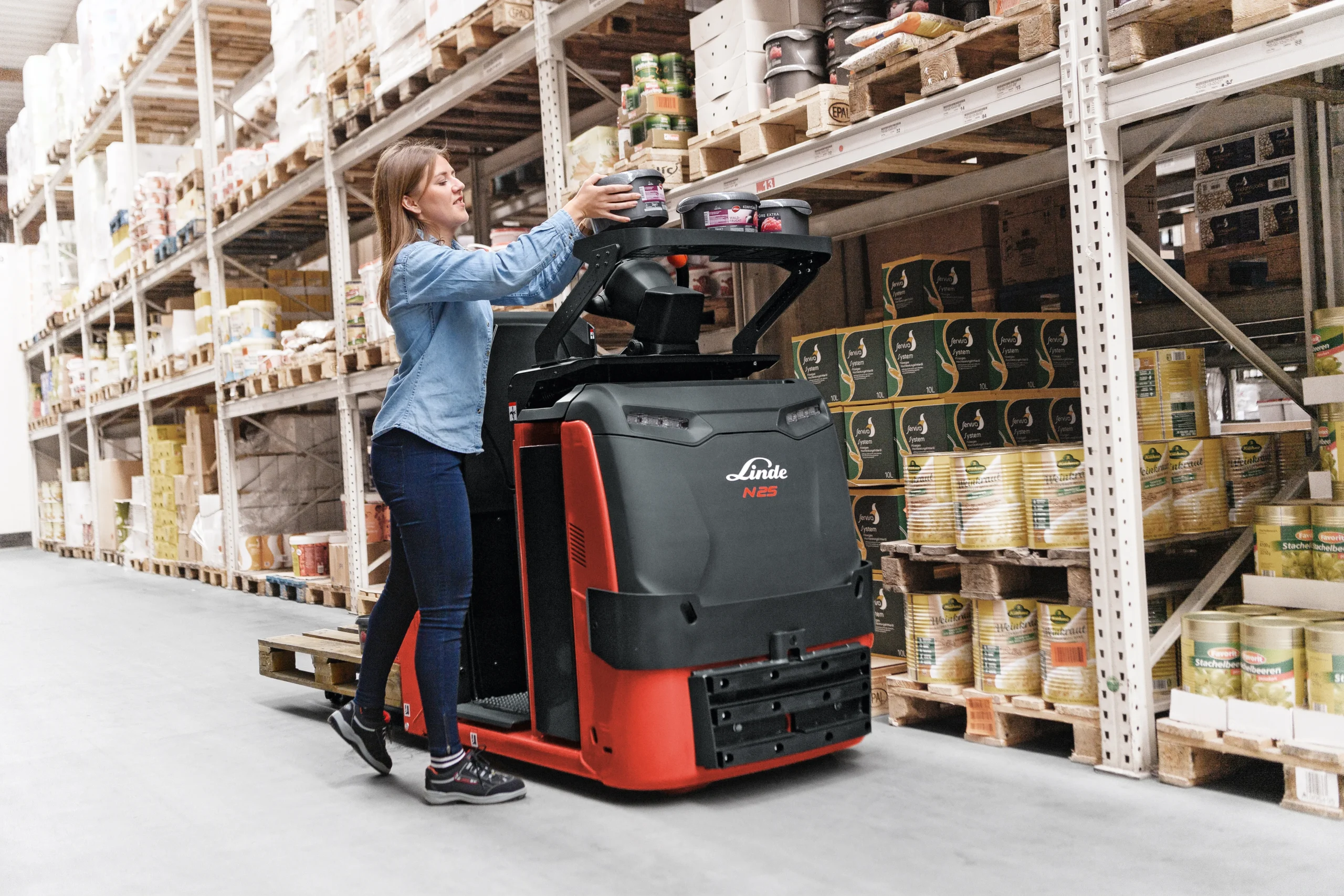 Linde N20 – N25 C niskopodizni komisioneri su svestrani u skladištu zahvaljujući svojoj visokoj nosivosti i dinamičnim voznim karakteristikama. Duge vilice omogućuju istovremeno podizanje do tri palete ili četiri rol-kaveza težine do 2.000 ili 2.500 kilograma. Klasična konstrukcija nudi jasan pregled u svim smjerovima i omogućuje fleksibilno manevriranje čak i u uskim skladištima putem intuitivnog upravljačkog kotača. Uz pomoć trofaznog AC motora od 3 kW, komisioner ubrzava do 14 km/h. Maksimalna sigurnost osigurana je robusnim dizajnom i automatskim prilagođavanjem brzine. Posebna pažnja posvećena je ergonomiji: Od niskog ulaza do amortizirane platforme kao standarda i nježnog naslona, komisioner rasterećuje vozača od fizičkog napora te mu pomaže da radi učinkovitije.